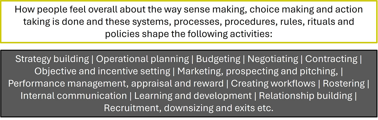 In the next post I’ll delve a bit deeper into how people feel about the way things get done in the groups that matter to you, and how you might help them change the culture themselves should that be needed.